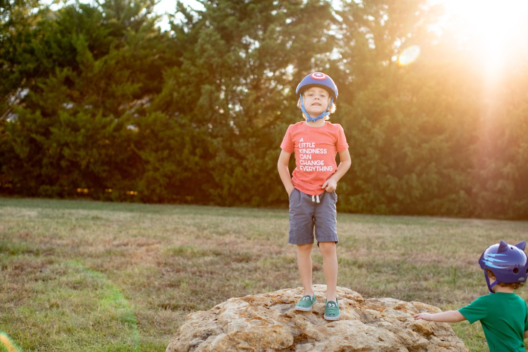 I was dropping Rivers off at school this morning. Almost every day he runs through the front doors. We aren’t late, he just likes to run I guess. I can’t really tell you why. But he is always the only kid running, everyone else just leisurely strolling inside. He is completely unaware that no one else is running. He doesn’t seem to care that its completely unnecessary to run. He likes it, and he does it. Sometimes we ride his bike to school. He still has training wheels, and might be the only kid in school that does. And he doesn’t care! One of his classmates even commented on it, and he still was completely unphased. Something that might embarrass me, because I am not doing what everyone else is, doesn’t impact his life at all.